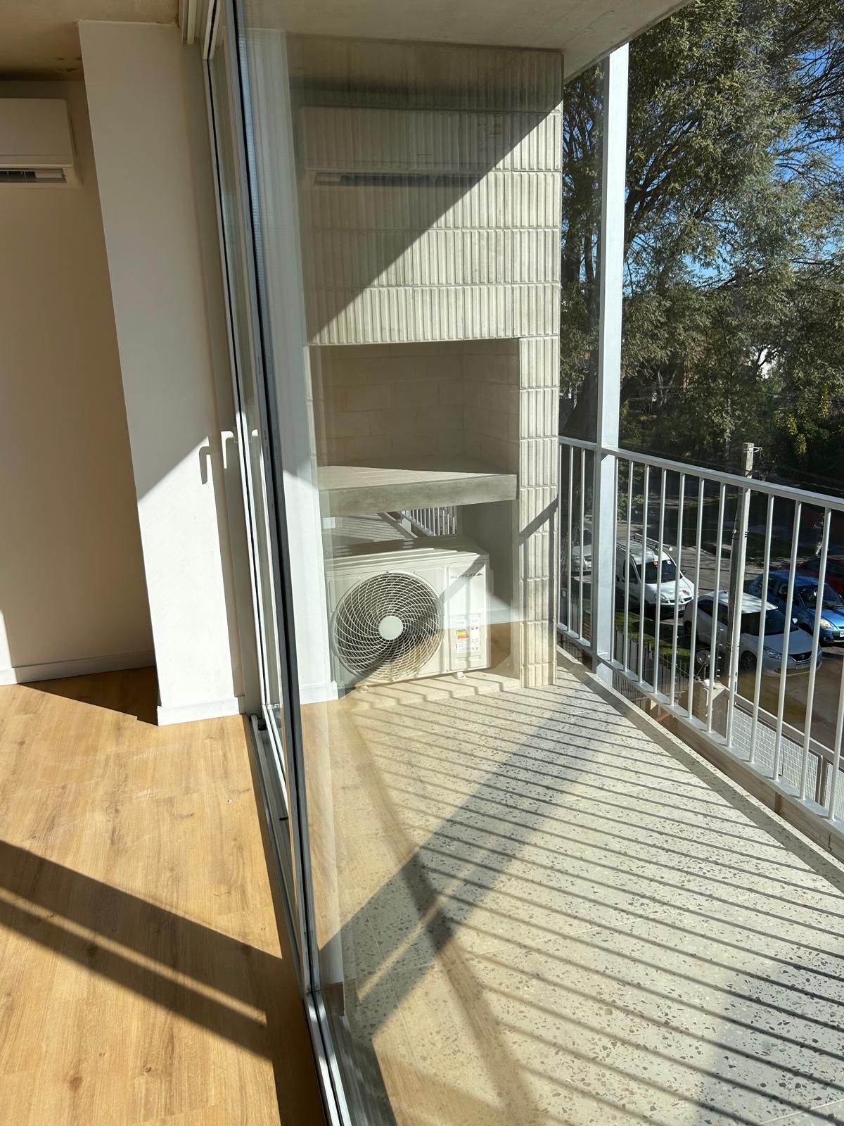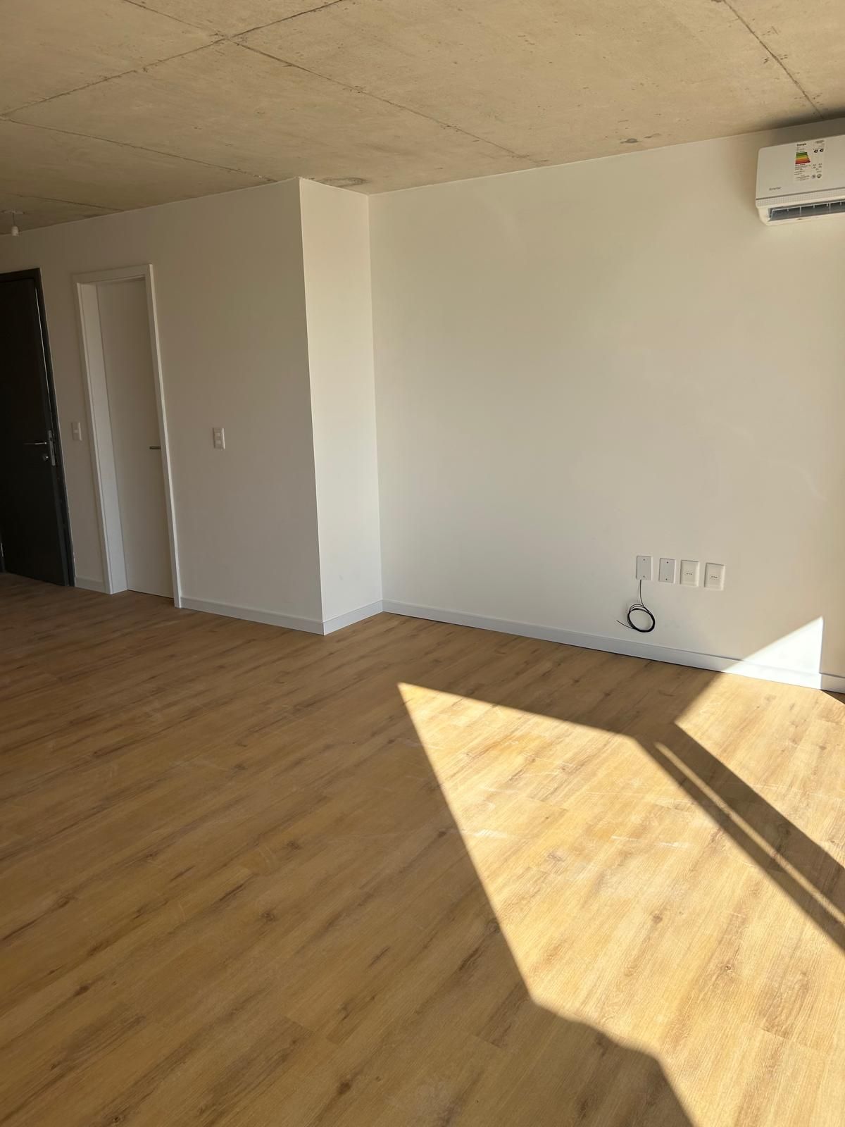 Living comedor con salida a terraza con parrillero al frente, aire acondicionado. Baño social.