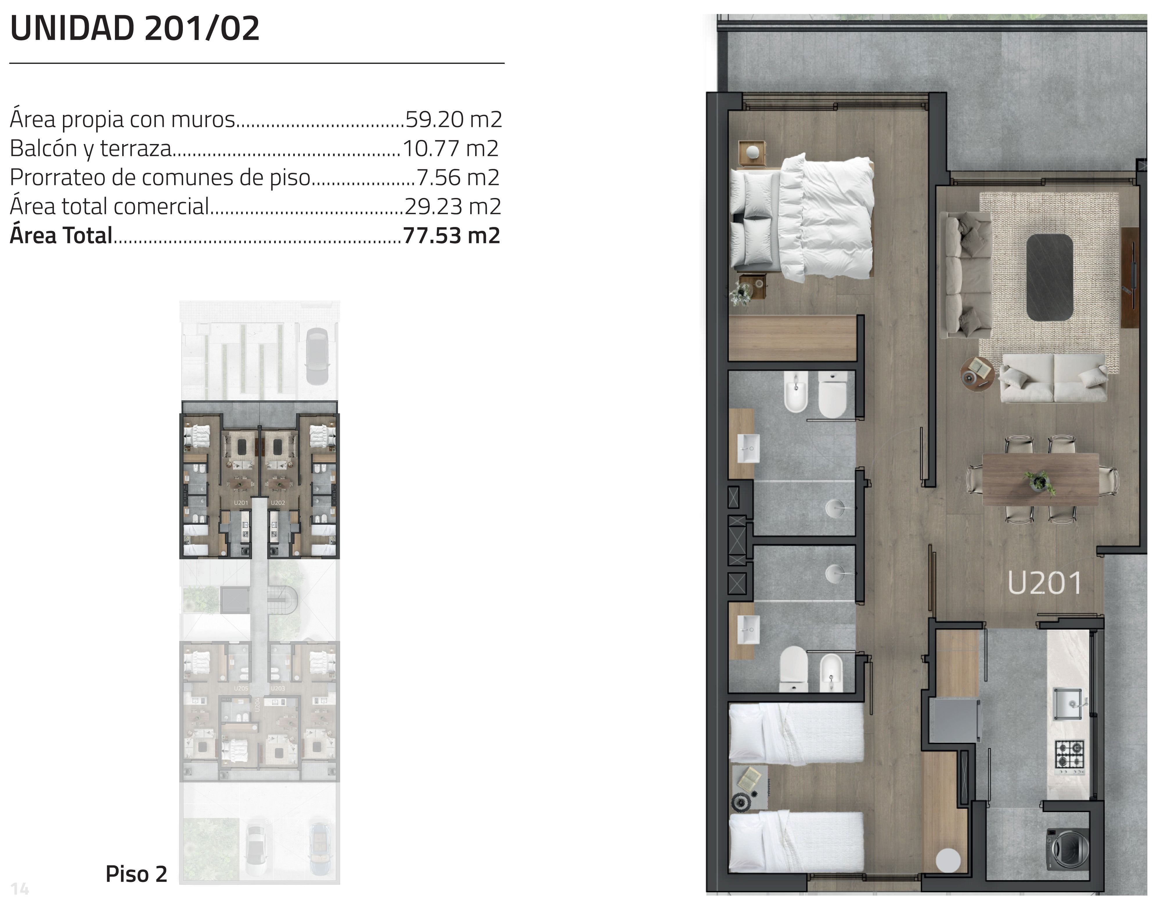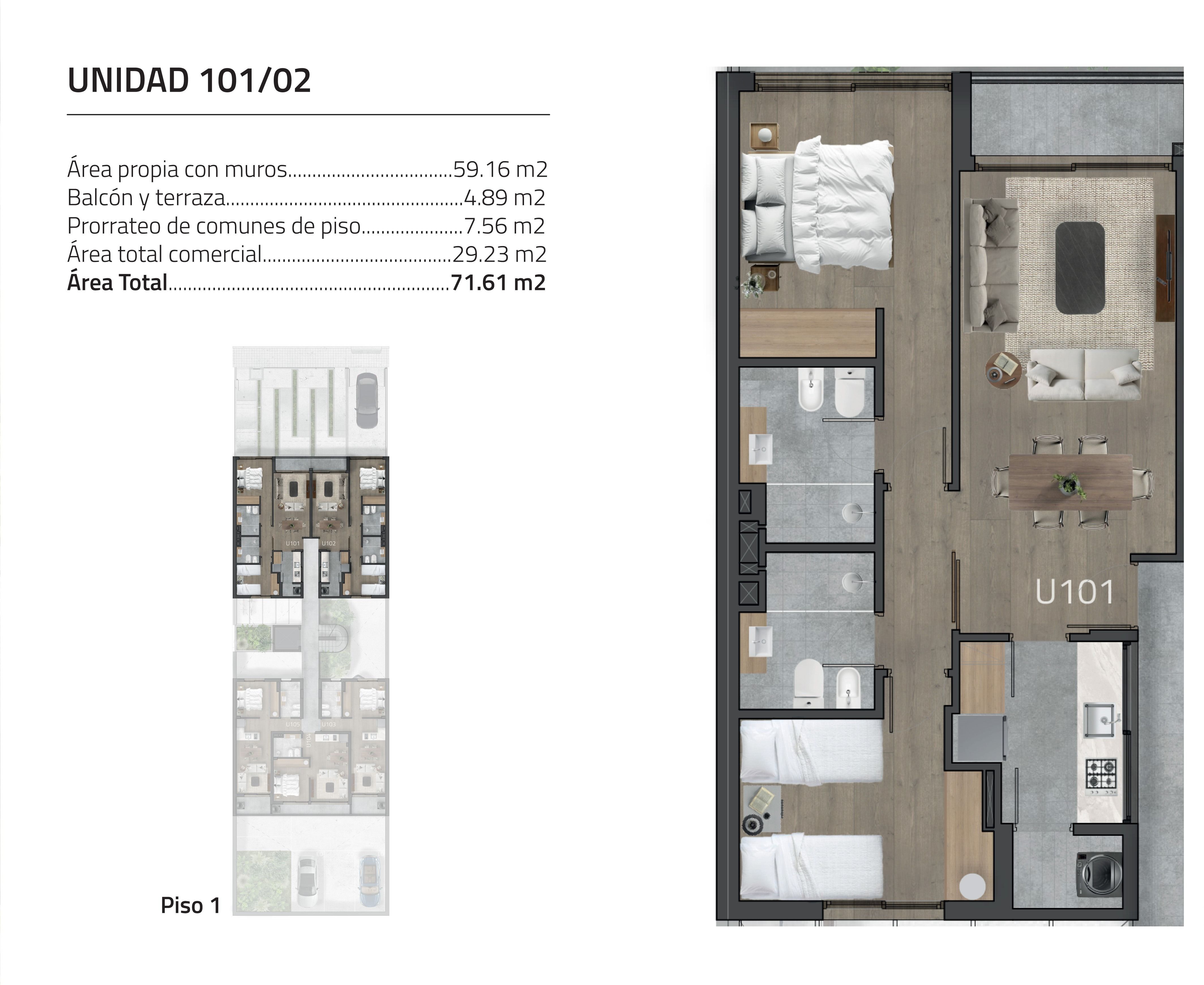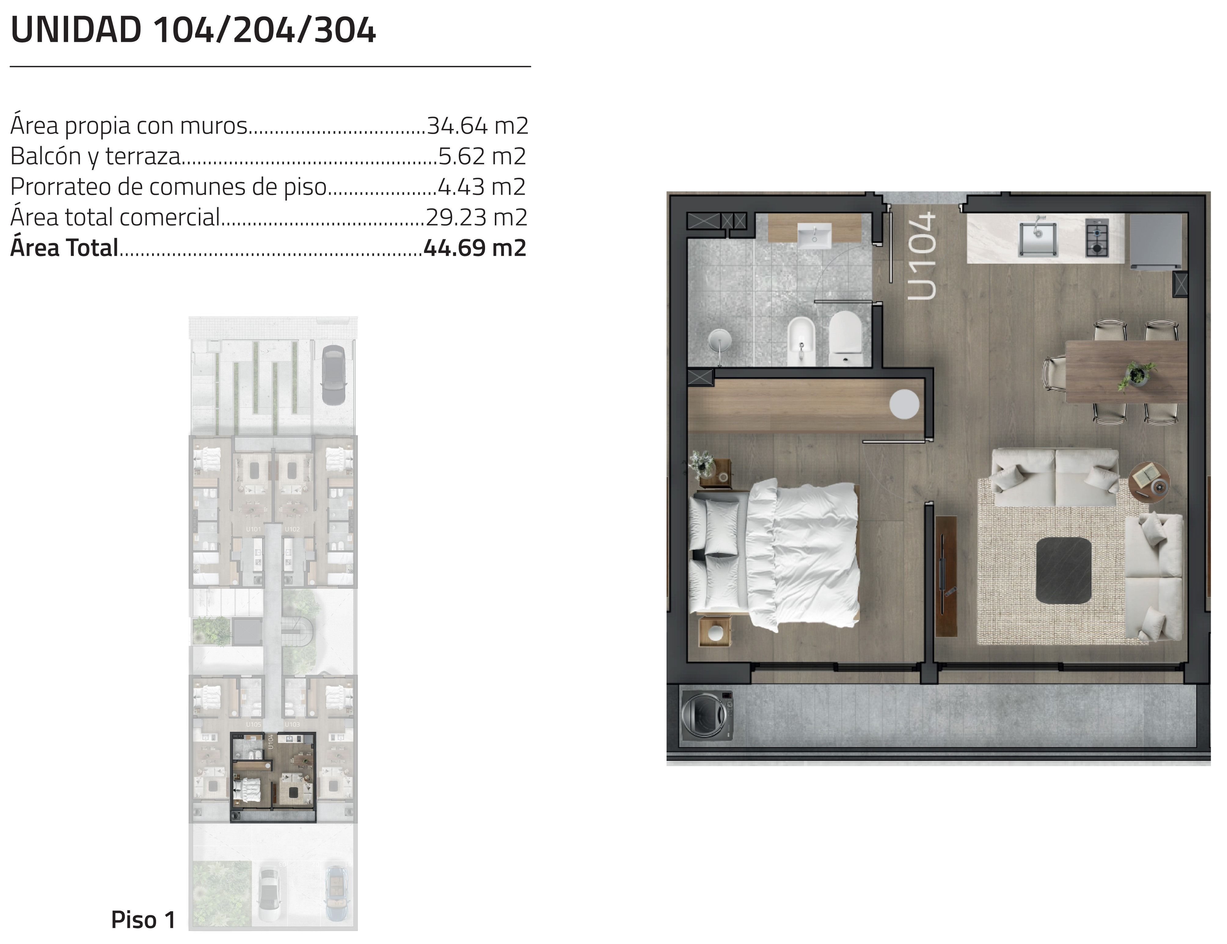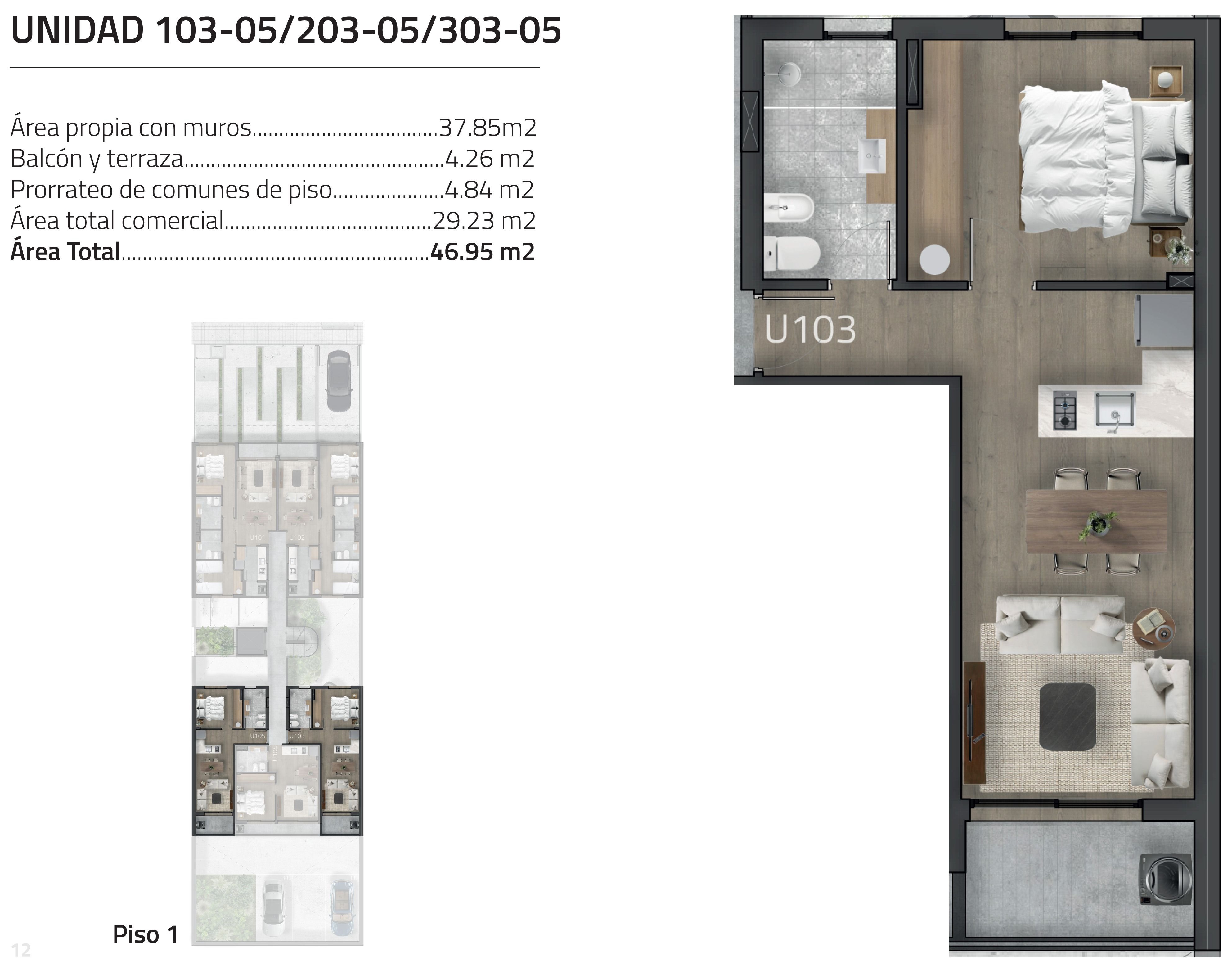 Cada unidad está pensada para brindar confort y funcionalidad desde el primer día, por lo que en el precio están incluidos anafe, horno, calefón, y aire acondicionado, para que disfrutes de tu apartamento totalmente equipado.