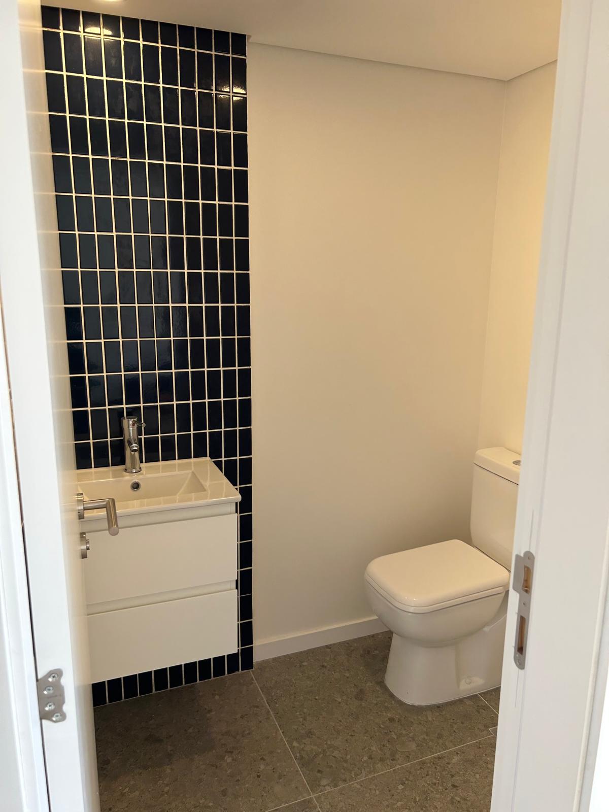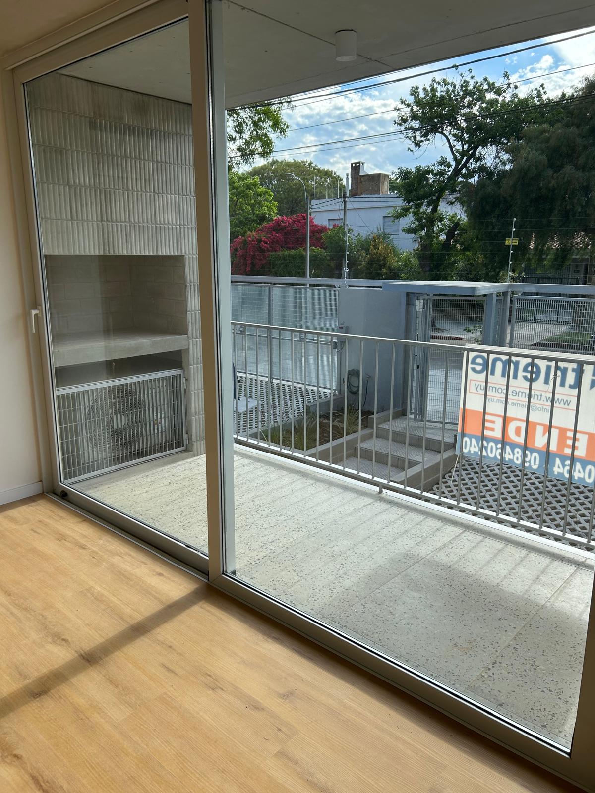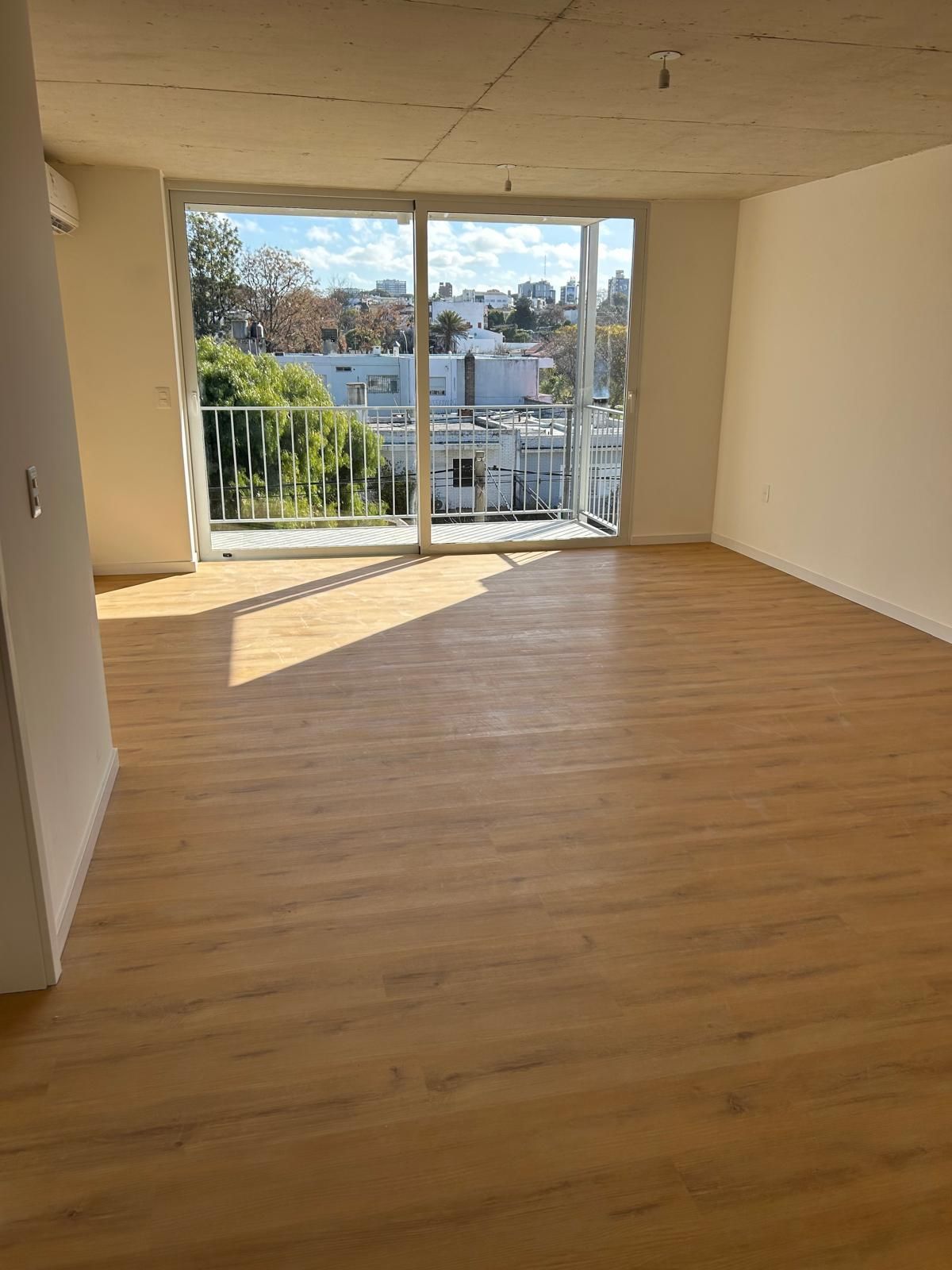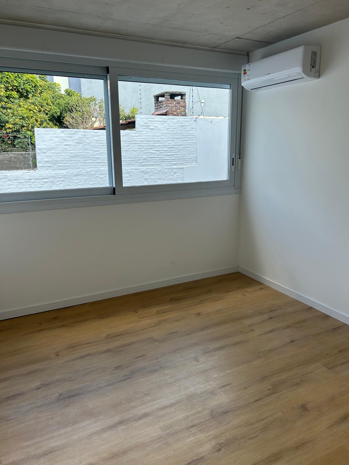 Living comedor con salida a terraza con parrillero al frente, aire acondicionado. Baño social.