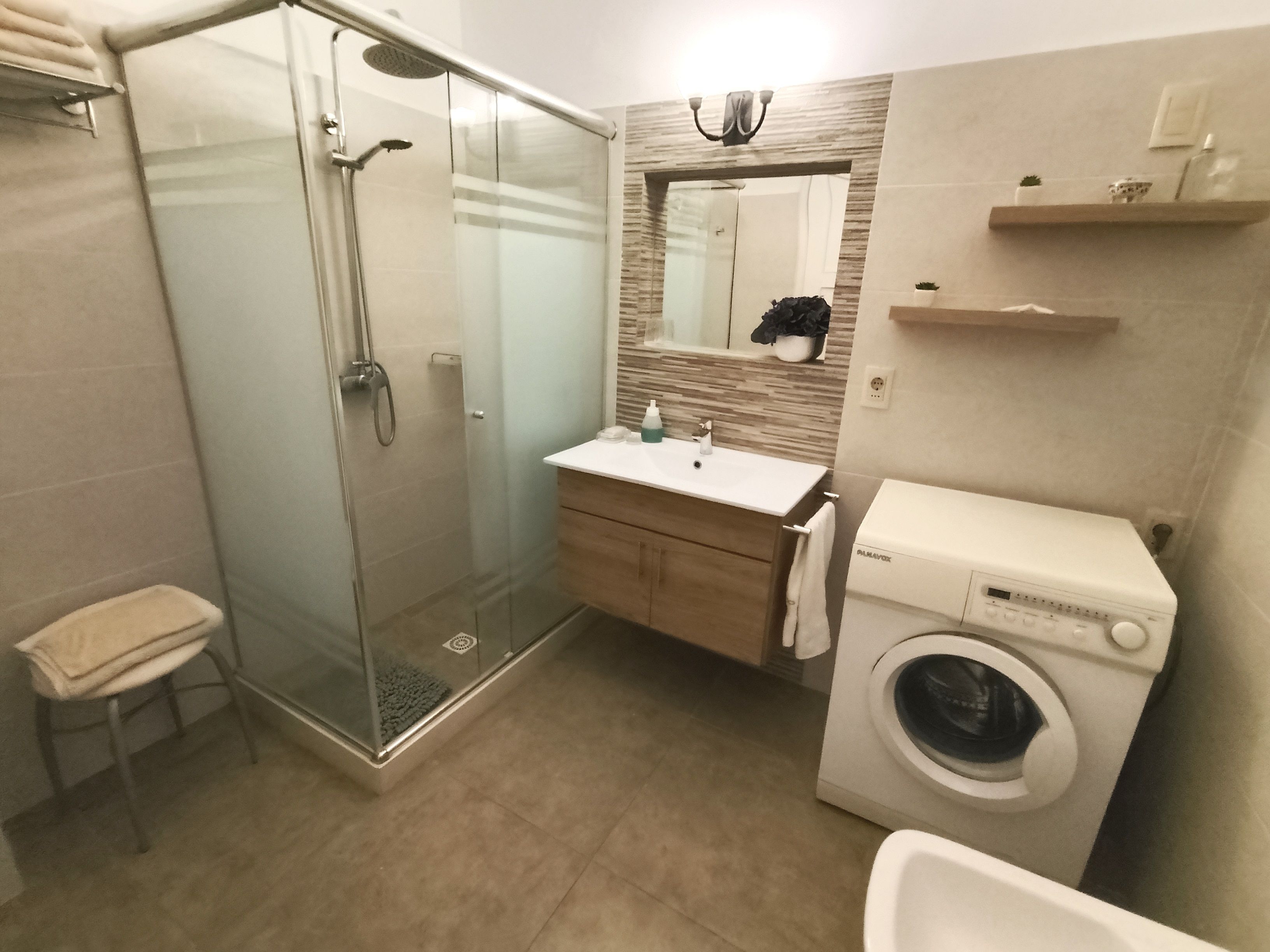 1 baño completo, ducha con mampara.