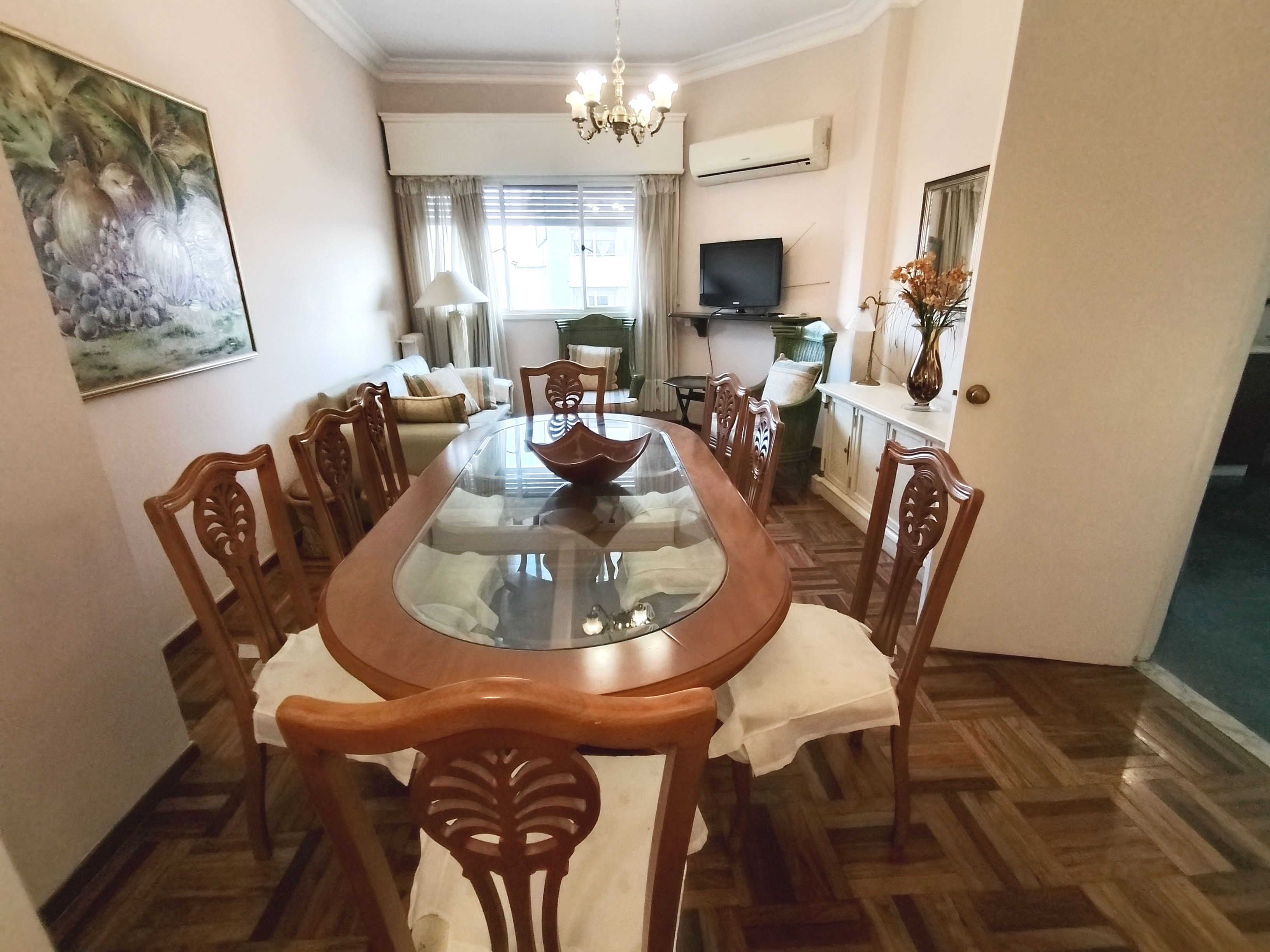 Puerta de ingreso al living-comedor con ventana al frente. Con aire acondicionado