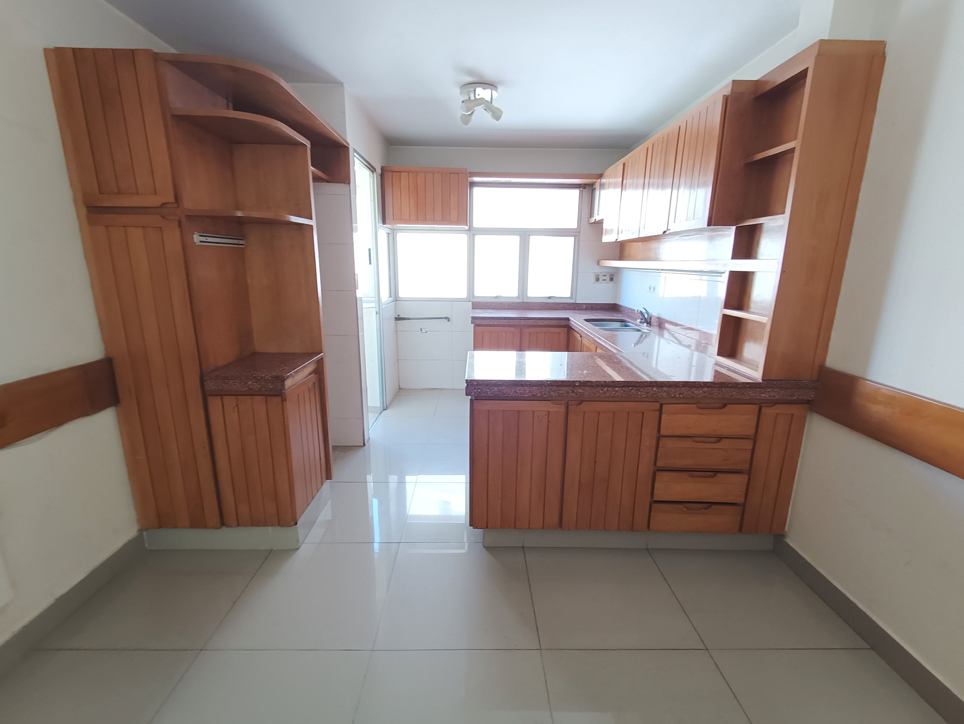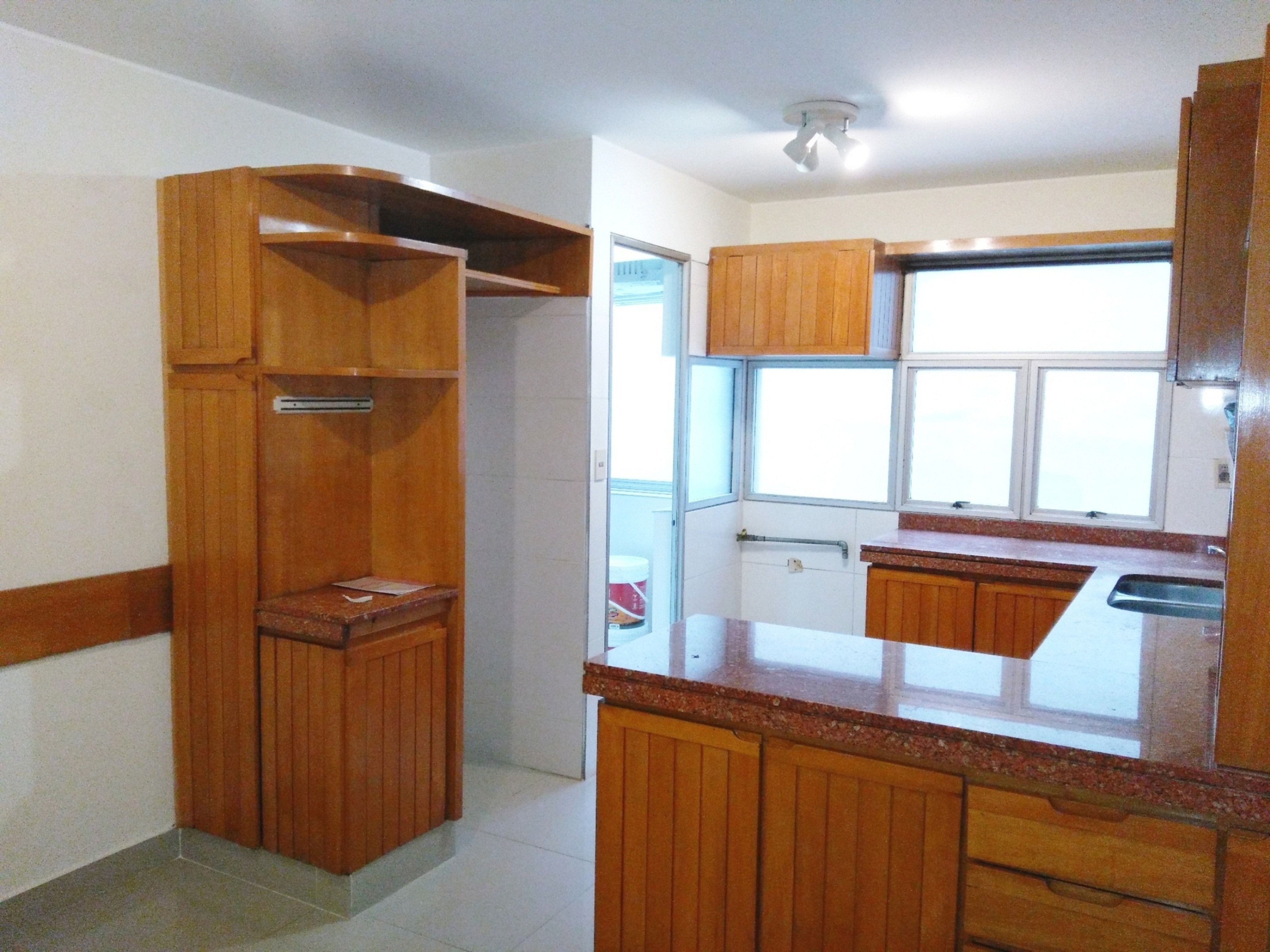 Cocina con amplia mesada, placares bajo y sobre mesada, con gran ventana; estar diario.