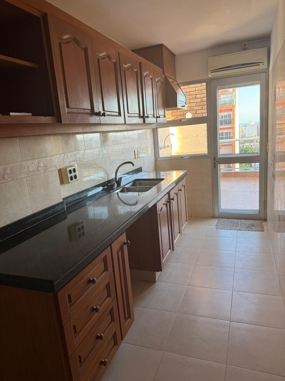 Cocina con muebles sobre y bajo mesada, office y salida terraza.